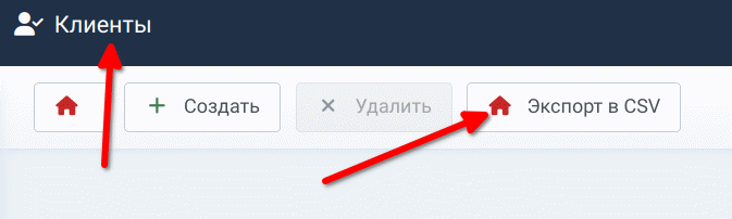 В разделе «Клиенты» есть возможность экспорта клиентов в формат CSV.