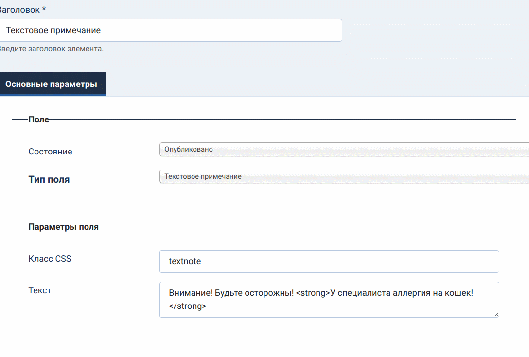 У данного типа поля всего один параметр: CSS класс.
