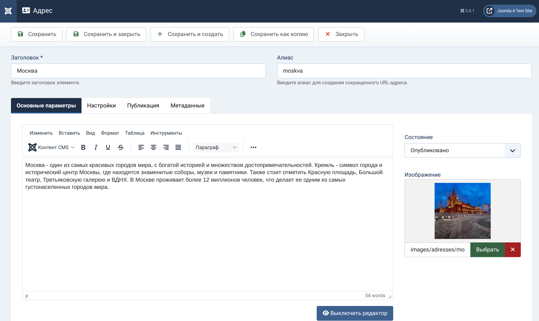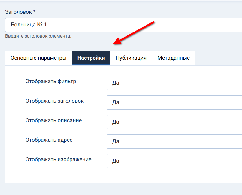 Создание учреждения отчасти похоже на создание «Адреса», где необходимо было заполнить заголовок, описание и изображение.