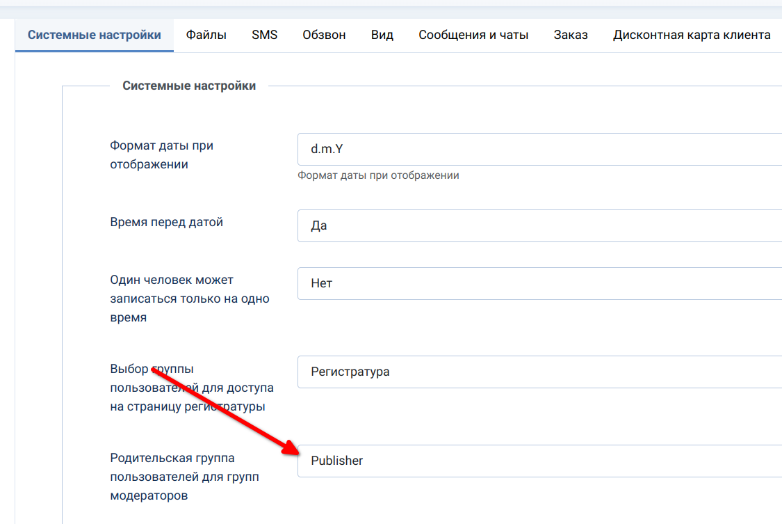 Для корректного создания групп пользователей должна быть выбрана «Родительская группа пользователей для групп модераторов»