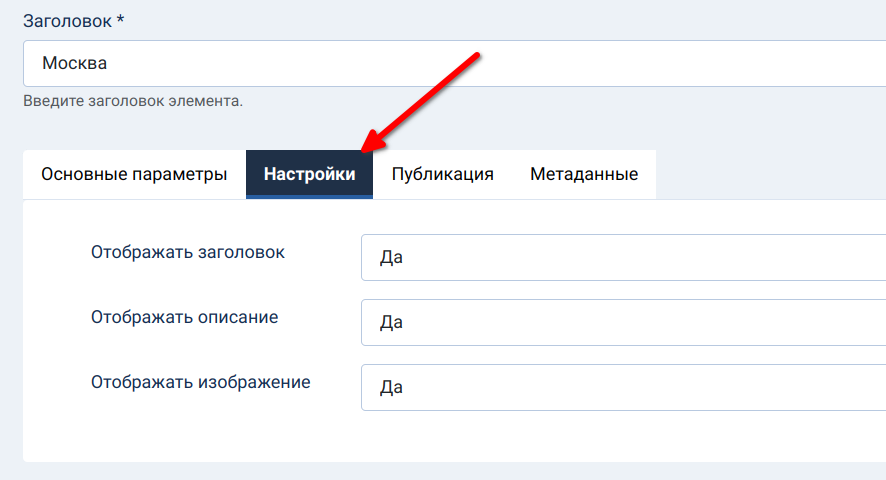 Переключатели расположенные на вкладке «Настройки» отвечают за вывод данного описания, изображения слева от описания и заголовка.