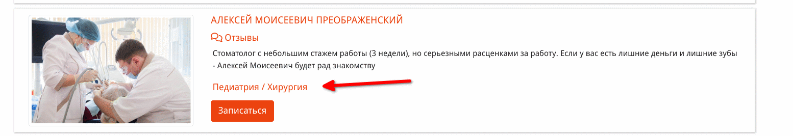 Стоит отметить, что при отображении специалиста на сайте, под его описанием, всегда отображается его специализации или их список, если их несколько.