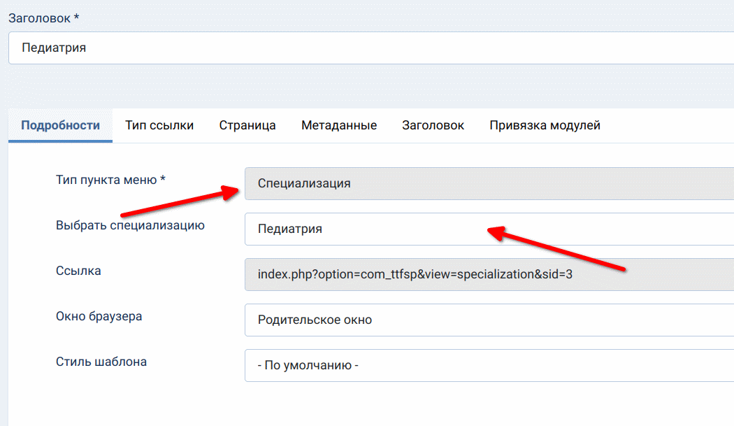 Однако, часто возникает необходимость отобразить на сайте пункт меню отображающий специалистов именно из заданной специализации.