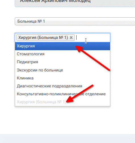 К слову, на странице редактирования специалиста, если таковой привязан к конкретному учреждению, при выборе специализации будут отображены только те, которые не относятся ни к одному учреждению, либо те, которые относятся к тому же учреждению, что и специалист.