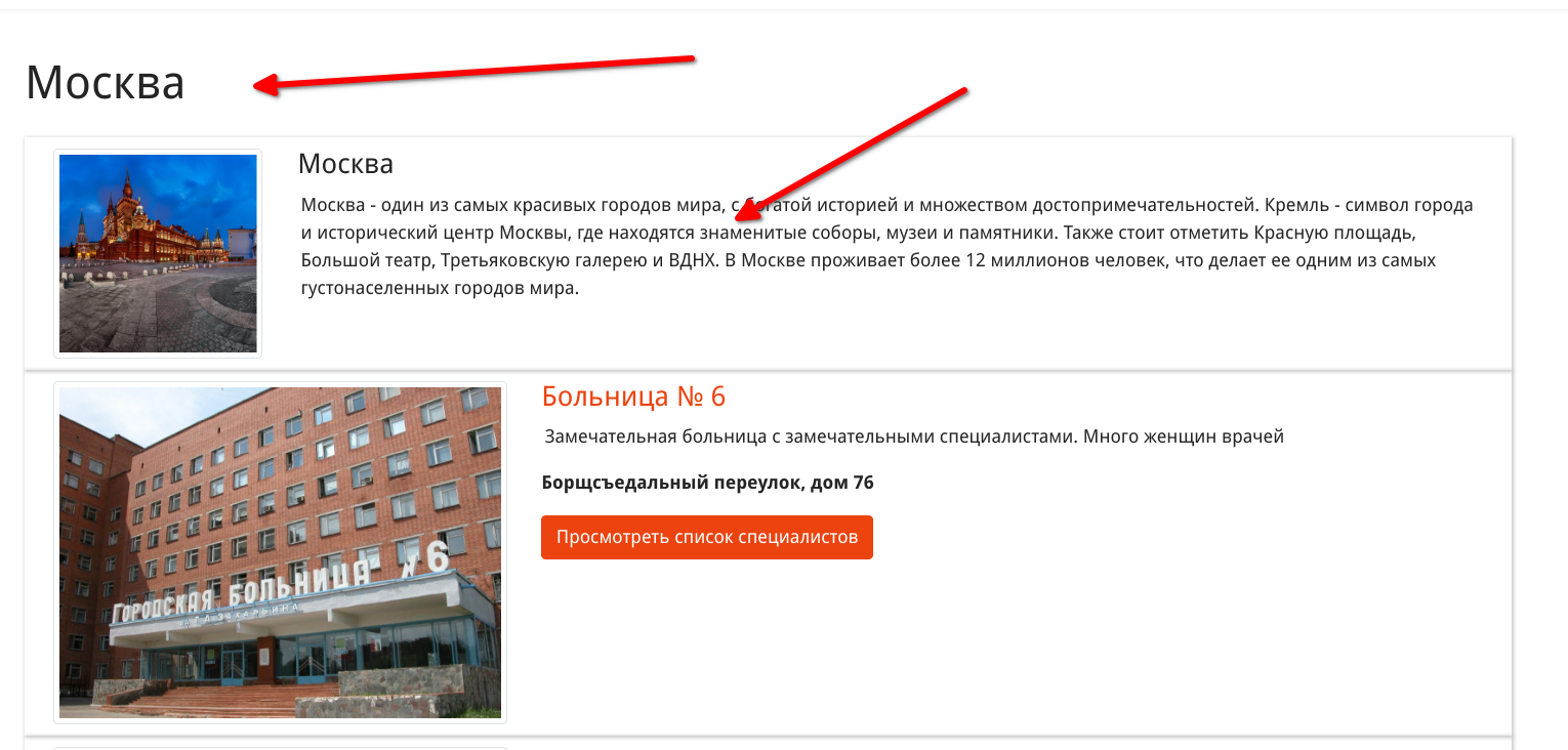 Для понимания сообщу, что такая страница отобразит список специалистов, которые относятся к выбранному учреждения.