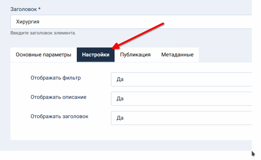Также на вкладке «Параметры» стоит обратить внимание на переключатель «Отображать описание», позволяющий включать или скрывать описание учреждения над списком специалистов.